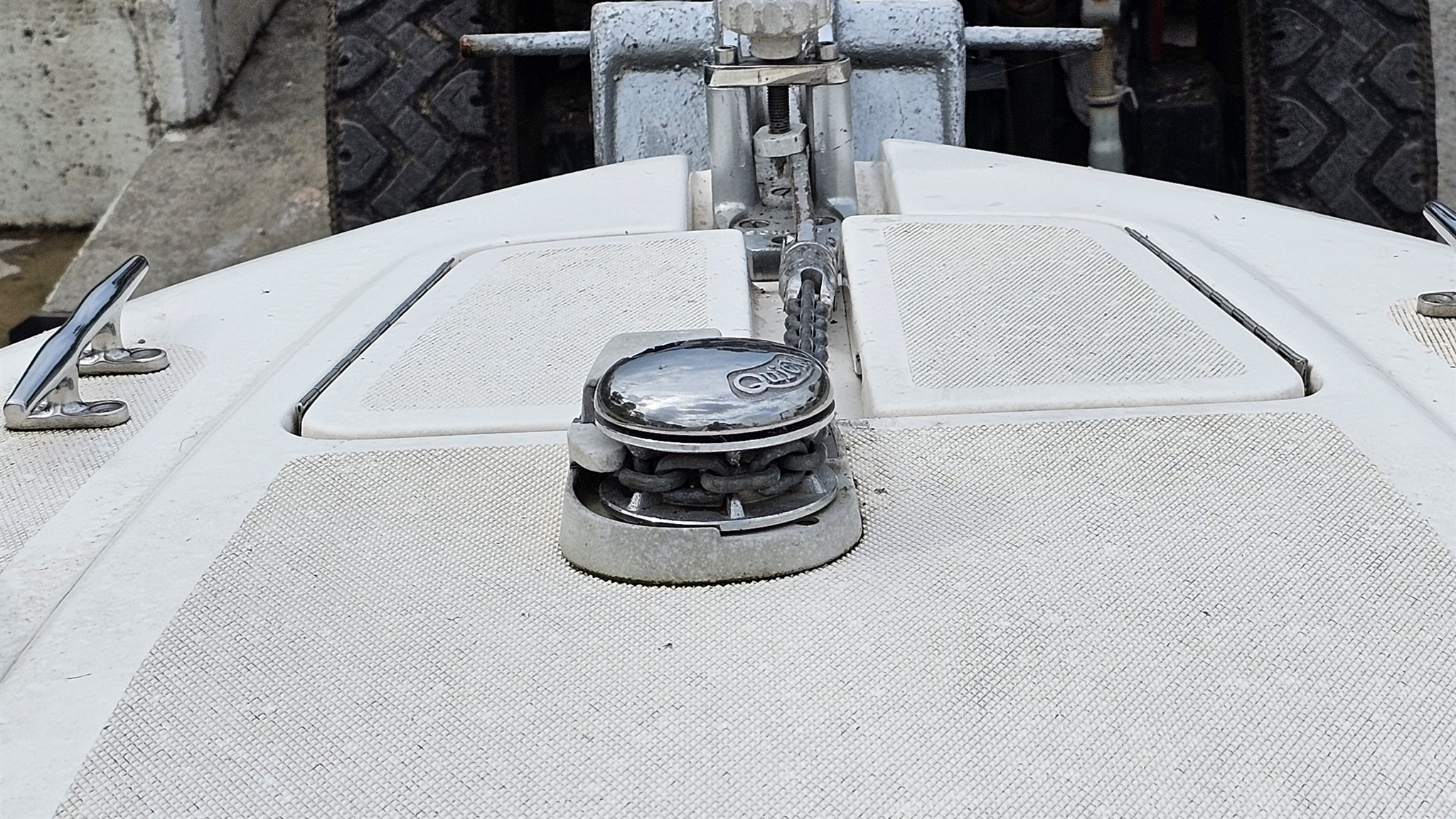 For navigation: Electric windlass (with anchor included), compass, trumpet, electric bilge pump.