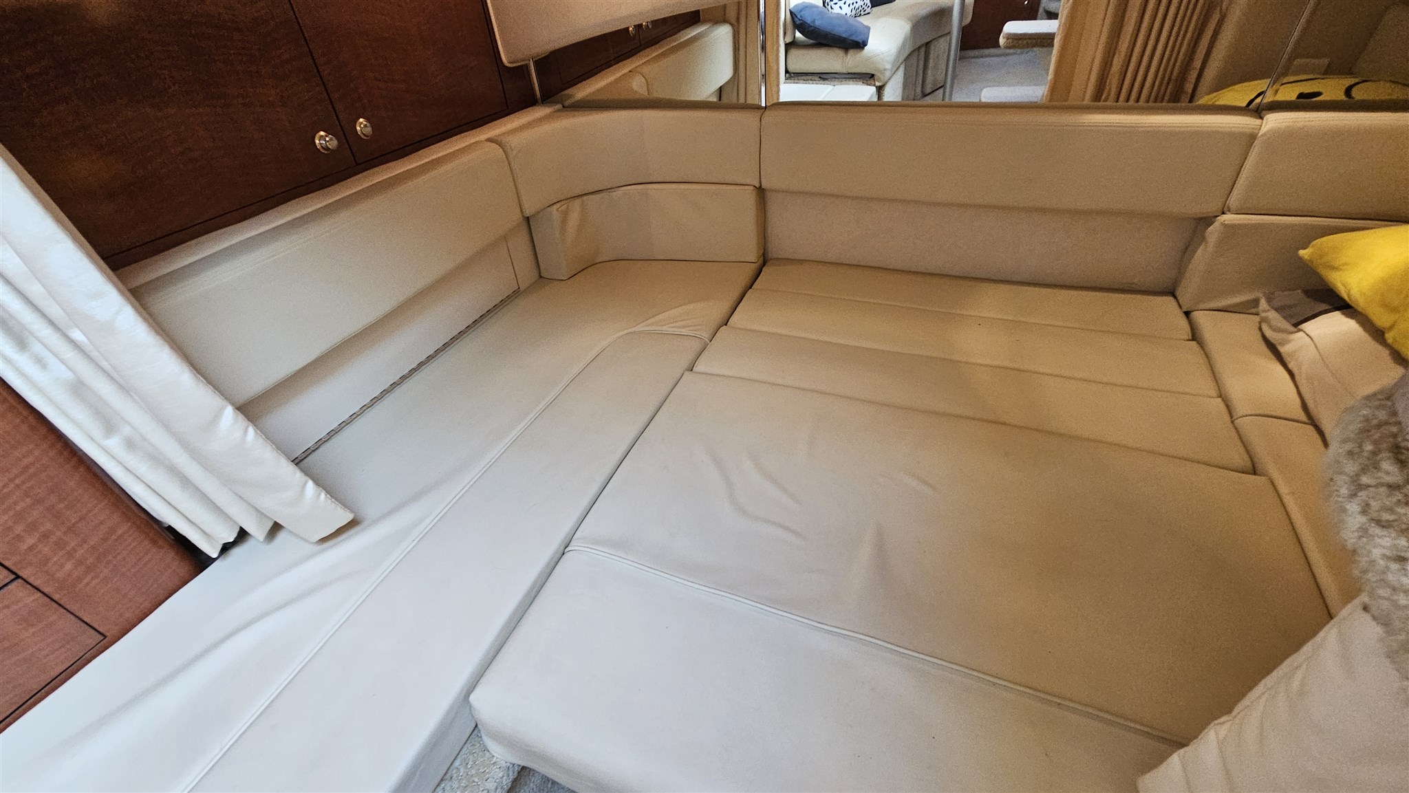 Exterior to live: A huge cockpit with a dinette that can be converted into a sundeck, a wetbar for your aperitifs and a teak platform perfect for diving.