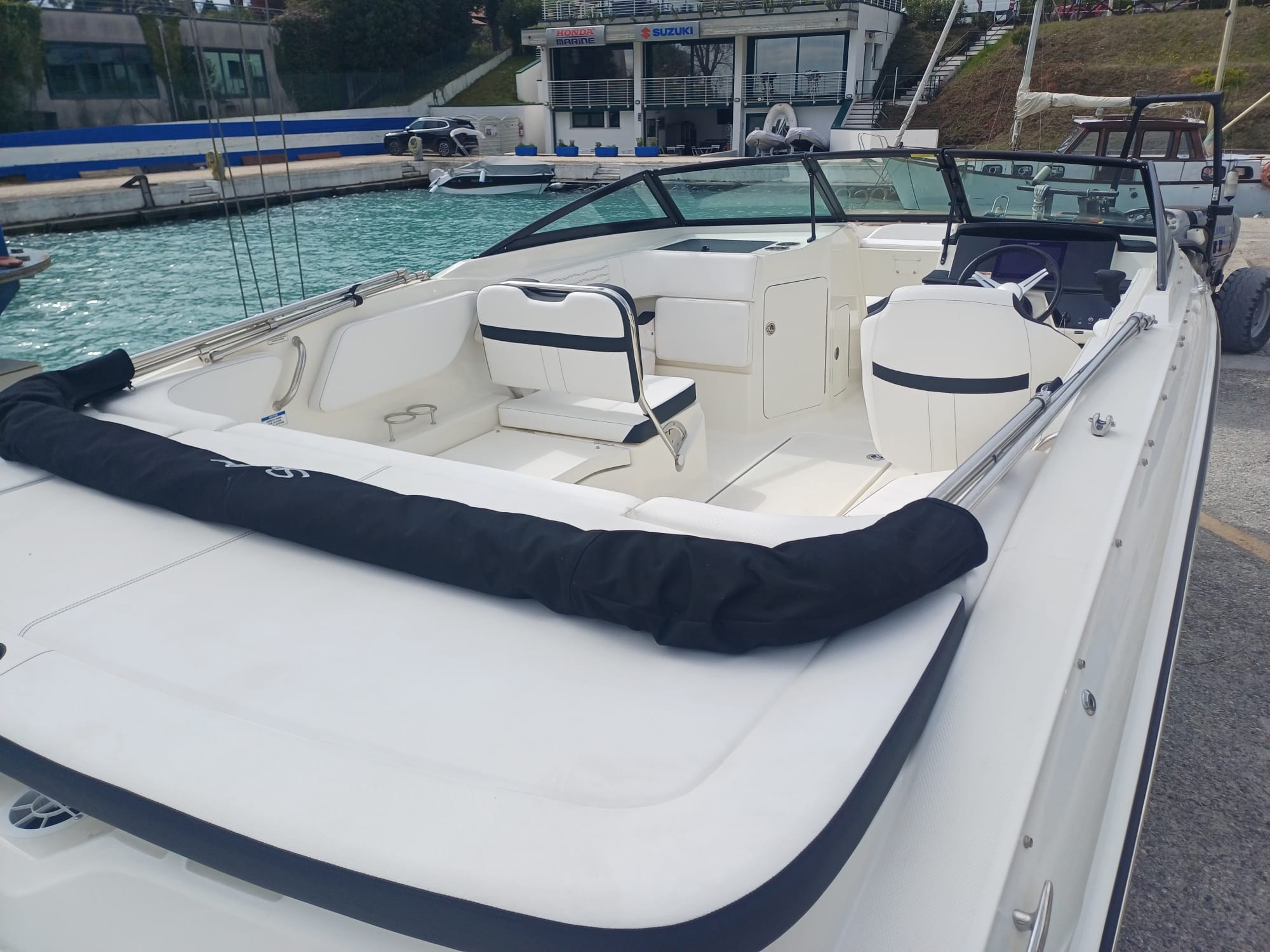 Captain Package: the superior equipment package that enriches the boat with additional finishes and comforts (Round table in the cockpit, Additional cushions for bow sundeck with cushion for passage, Sun awning (Bimini) with stainless steel case and structure, Quick couplings for fenders, Cover sheets, cockpit cover and bow cover)