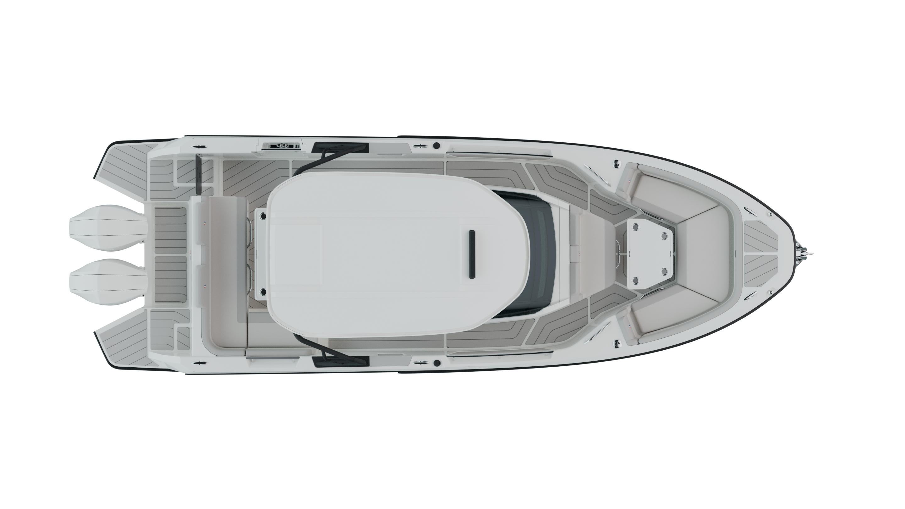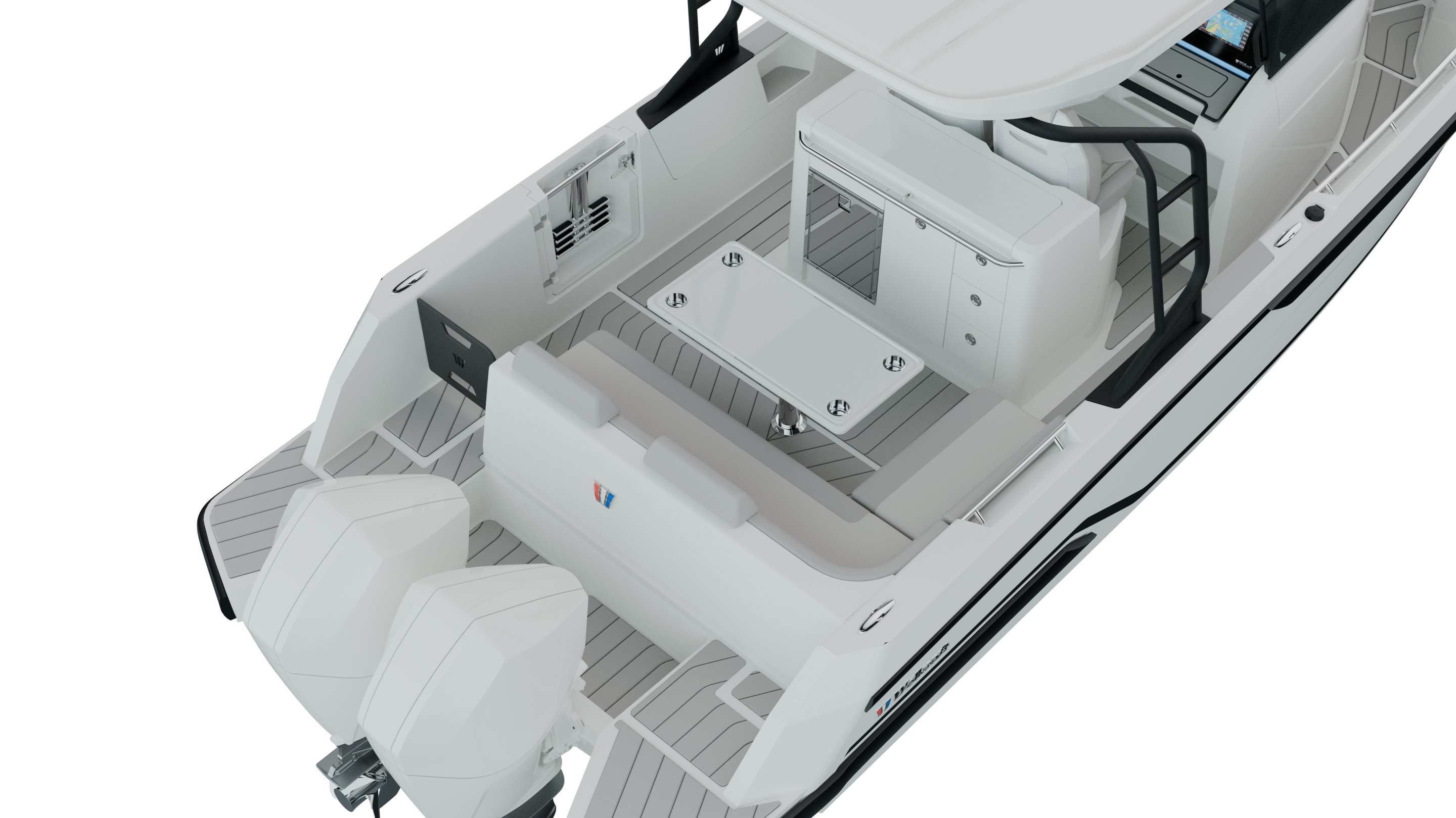 T-Top: The ideal balance between aesthetics and functionality. The integrated hard-top offers sun protection and equipment support, making it perfect for family days or sport fishing, all while maintaining an aggressive look.
